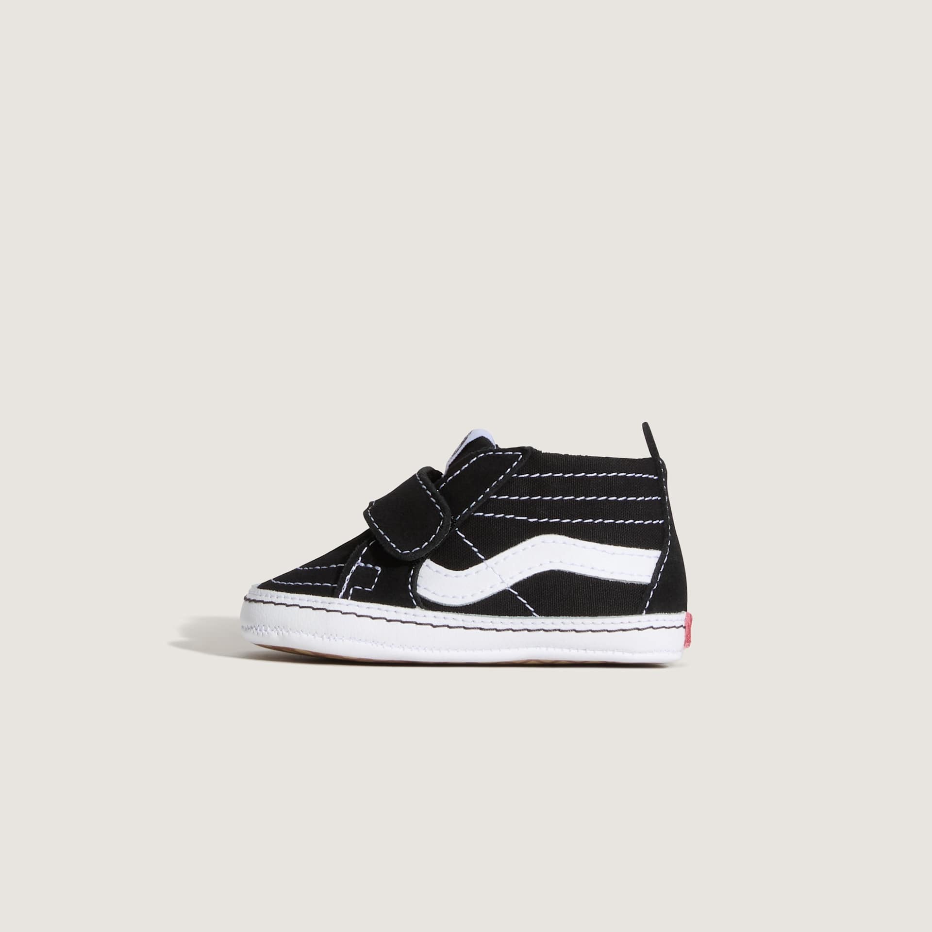 A Vans Sk8-Hi Crib Black/True White a legendás Sk8-Hi modell kisbabák számára tervezett változata. Ez a baba cipő a klasszikus deszkás stílust ötvözi a kényelmes, puha anyagokkal, így ideális választás az első lépések előtti időszakra. A fekete-fehér színkombináció és az ikonikus Vans Sidestripe™ már egészen kicsi korban is stílusos megjelenést biztosít.