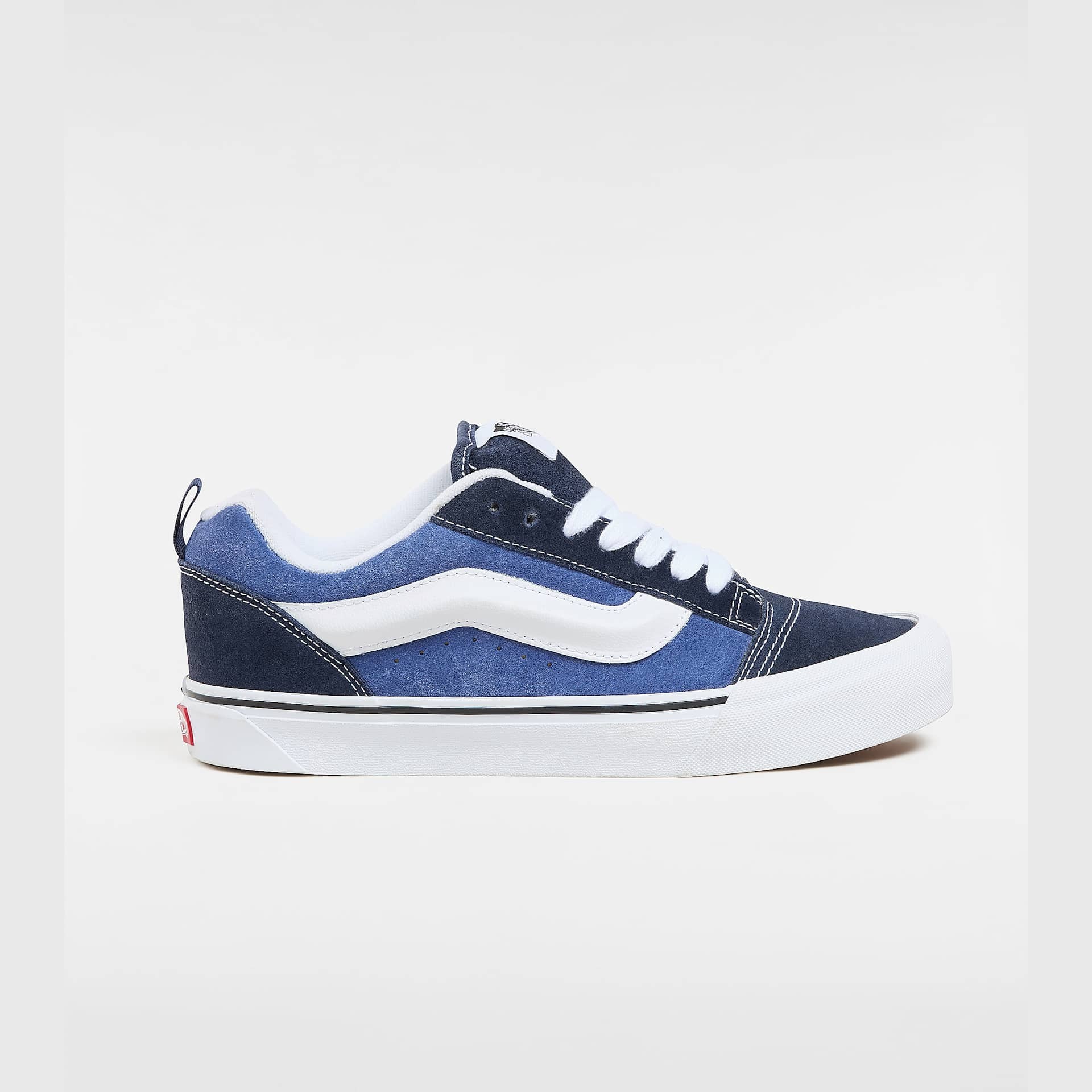 A Vans Knu Skool NAVY/TRUE WHITE a '90-es évek klasszikus stílusának modern interpretációja, amely a Vans ikonikus Old Skool modelljének továbbfejlesztett változata. A pufi nyelv, a 3D-s Vans Sidestripe™, és a túlméretezett, vastag fűzők teszik ezt a cipőt igazán különlegessé. A múlt stílusjegyeit a mai trendekkel ötvözve a Knu Skool egyedi megjelenést és kiváló kényelmet kínál.